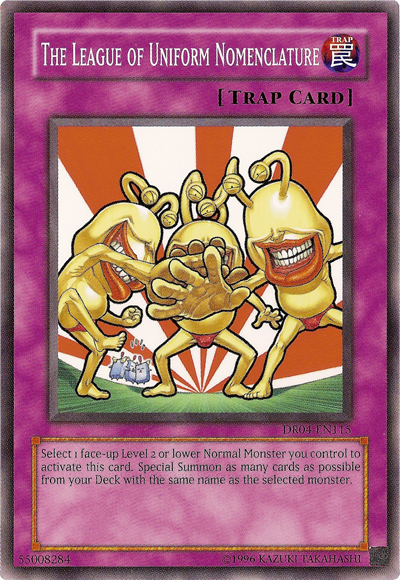 Select 1 face-up Level 2 or lower Normal Monster on your side of the field to activate this card. Special Summon from your Deck to your side of the field as many cards as possible with the same name as the selected monster.