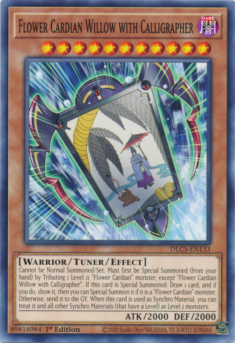 Cannot be Normal Summoned/Set. Must first be Special Summoned (from your hand) by Tributing 1 Level 11 "Flower Cardian" monster, except "Flower Cardian Willow with Calligrapher". If this card is Special Summoned: Draw 1 card, and if you do, show it, then you can Special Summon it if it is a "Flower Cardian" monster. Otherwise, send it to the Graveyard. When this card is used as Synchro Material, you can treat it and all other Synchro Materials (that have a Level) as Level 2 monsters.