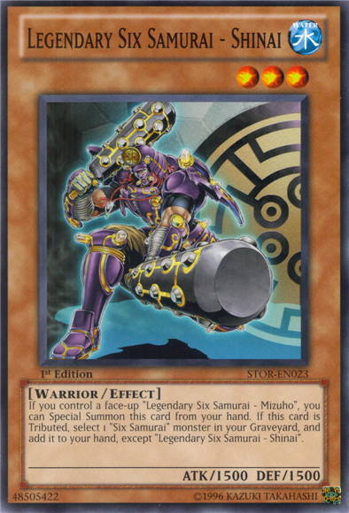 If you control a face-up "Legendary Six Samurai - Mizuho", you can Special Summon this card from your hand. If this card is Tributed, select and add 1 "Six Samurai" monster from your Graveyard to your hand, except "Legendary Six Samurai - Shinai".
