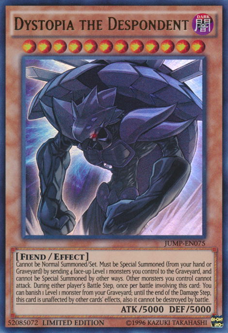 Cannot be Normal Summoned/Set. Must be Special Summoned (from your hand or Graveyard) by sending 4 face-up Level 1 monsters you control to the Graveyard, and cannot be Special Summoned by other ways. Other monsters you control cannot attack. During either player's Battle Step, once per battle involving this card: You can banish 1 Level 1 monster from your Graveyard; until the end of the Damage Step, this card is unaffected by other cards' effects, also it cannot be destroyed by battle.