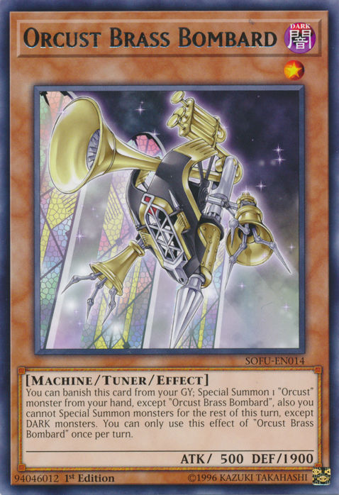 You can banish this card from your GY; Special Summon 1 “Orcust” monster from your hand, except “Orcust Bass Bombard”, also you cannot Special Summon monsters for the rest of this turn, except DARK monsters. You can only use this effect of “Orcust Bass Bombard” once per turn.