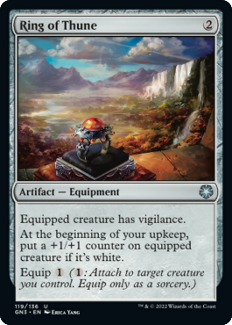 At the beginning of your upkeep, put a +1/+1 counter on equipped creature if it's white.